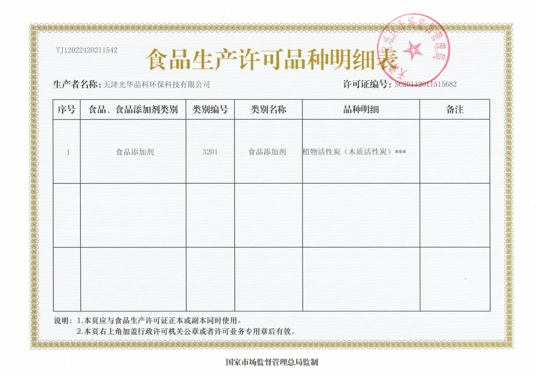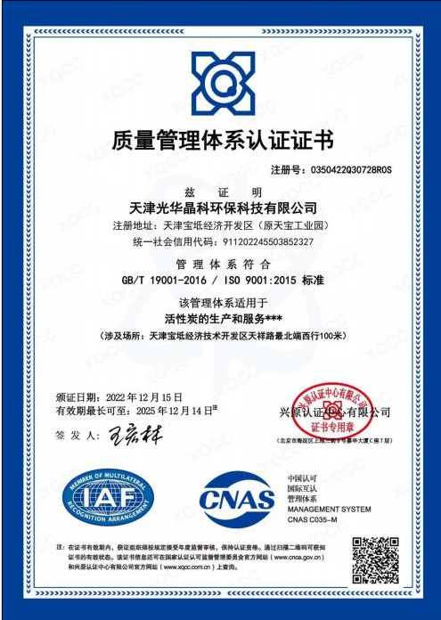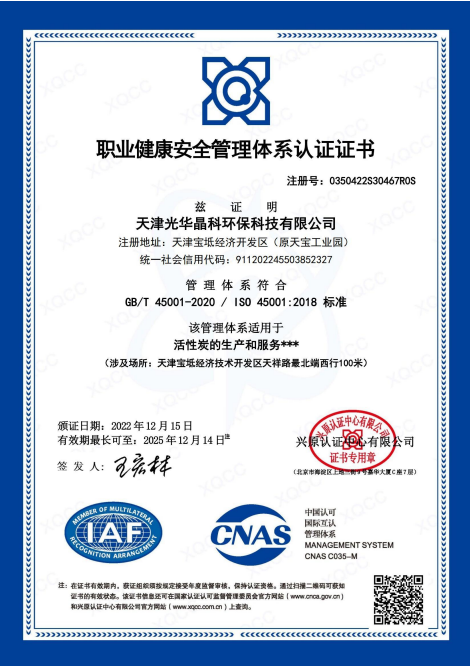 The "Guanghua" brand activated carbon, pioneered in China, has won numerous awards, including the National Silver Award, the Ministry of Forestry's Quality Award, and the Beijing Municipal Quality Brand Award. The company also formulated the first standard for activated carbon products and testing in China, making outstanding contributions to the development of China's activated carbon industry.